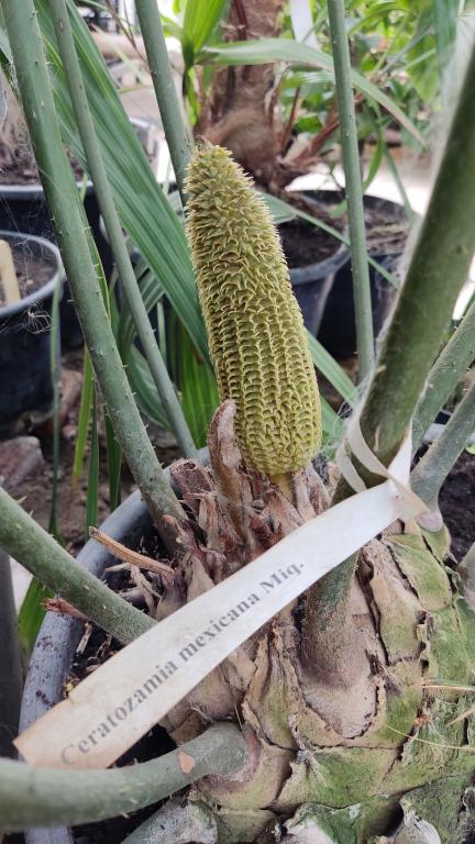 Цератозамия мексиканская, несмотря на то, что внешне напоминает пальму, по своей эволюции ближе к ныне существующим хвойным растениям, и из макростробил образуются «шишки» с семенами, подобно еловым и сосновым шишкам.