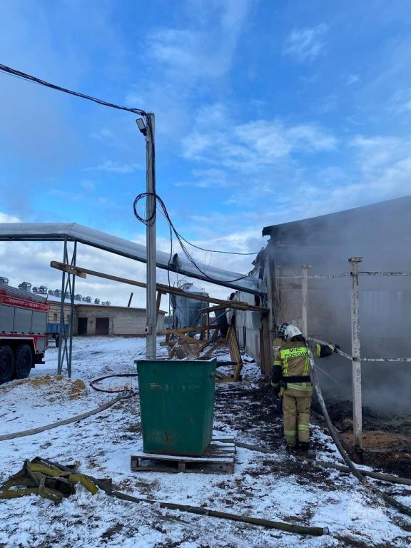 Сильное возгорание произошло сегодня рано утро на территории одной из птицефабрик в посёлке Красный Мост.