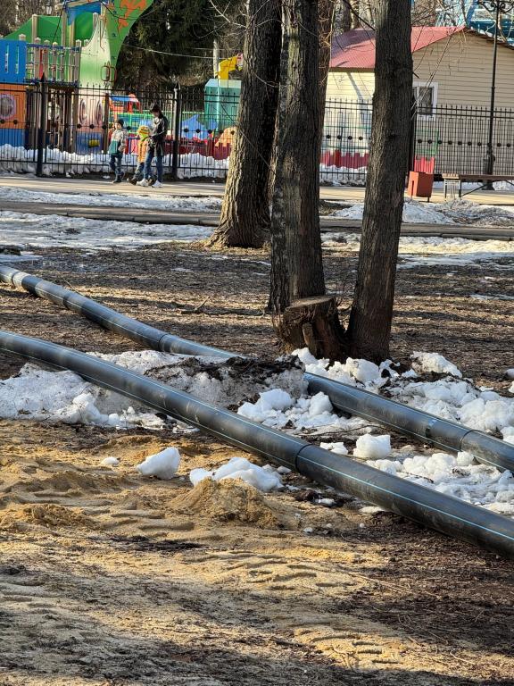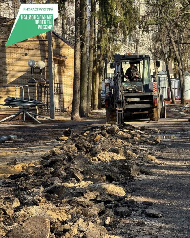 В настоящее время рабочие из подрядной организации заняты прокладкой канализации и демонтажем старого асфальтового покрытия.