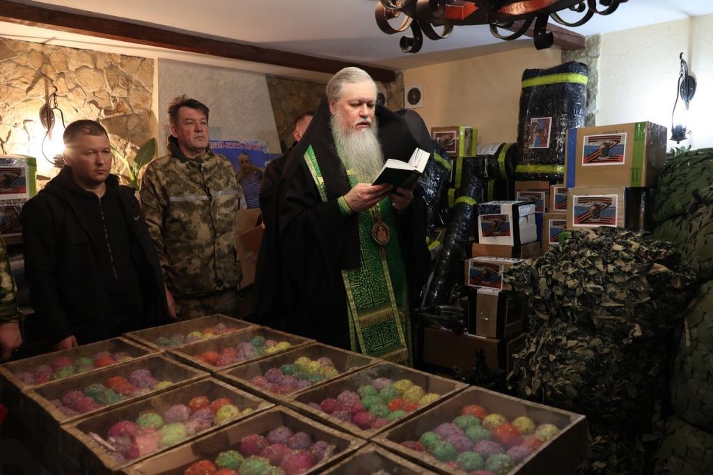 Епископ Волжский и Сернурский Феофан освятил гуманитарную помощь, в том числе пасхальные куличи, для воинов, находящихся в зоне СВО.