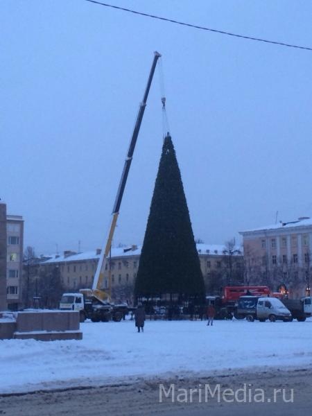 МариМедиа, 9 декабря. Монтаж искусственной ели занял всего несколько часов. Опираясь на прошлогодний опыт специалистов из Коломны, откуда была доставлена металлическая конструкция, специалисты Банно-прачечного и ритуального хозяйства без проблем собрали «новогоднее дерево». По данным пресс-службы мэрии, на украшение и подключение иллюминации потребуется еще день-два.