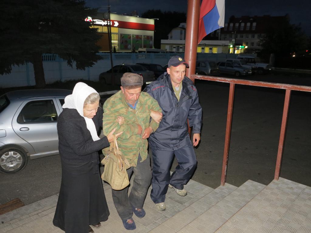 Машина пенсионера была обнаружена на Казанском тракте между поселками Пемба и Сурок. Спустя четыре дня в ходе осмотра лесного массива в районе реки Малый Кундыш, в нескольких километрах от поселка Сурок, пропавший мужчина был найден. Его обнаружил сотрудник ОМОН МВД по Республике Марий Эл майор полиции Андрей Черепанов. Пенсионер пояснил, что заблудился и тщетно все дни искал обратную дорогу. Он был истощен, с трудом мог передвигаться, так как стер стопы ног. Дожидаясь помощи, он укрывался от дождя в шалаше, который смастерил из подручных средств, питался ягодами, спал на мху. Средств для разжигания костра у него не было. Полицейские оказали пострадавшему медицинскую помощь, переодели и напоили водой. Сделав импровизированные носилки, они несколько километров несли мужчину до дороги, где посадили в свою машину и доставили в город.