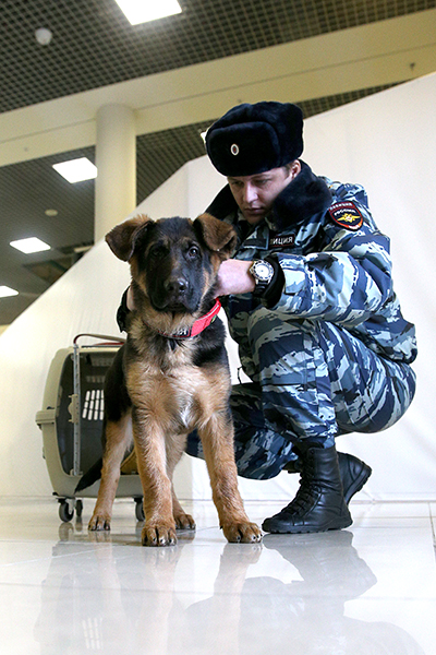 МариМедиа, 14 января. Щенок овчарки Добрыня, подаренный российскими полицейскими коллегам во Франции в знак солидарности и поддержки после гибели на боевом посту легендарной овчарки Дизель, привыкает к новым условиям.