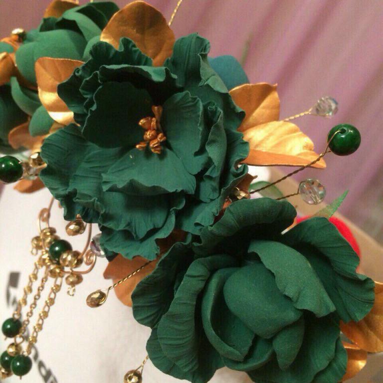 Каждой козе подобрали специальные аксессуары-украшения, сделанное под заказ. Для татарской — изумрудно-золотые венок с цветами и ожерелье. Для марийской брюнетки были изготовлены красные венок и ожерелье.