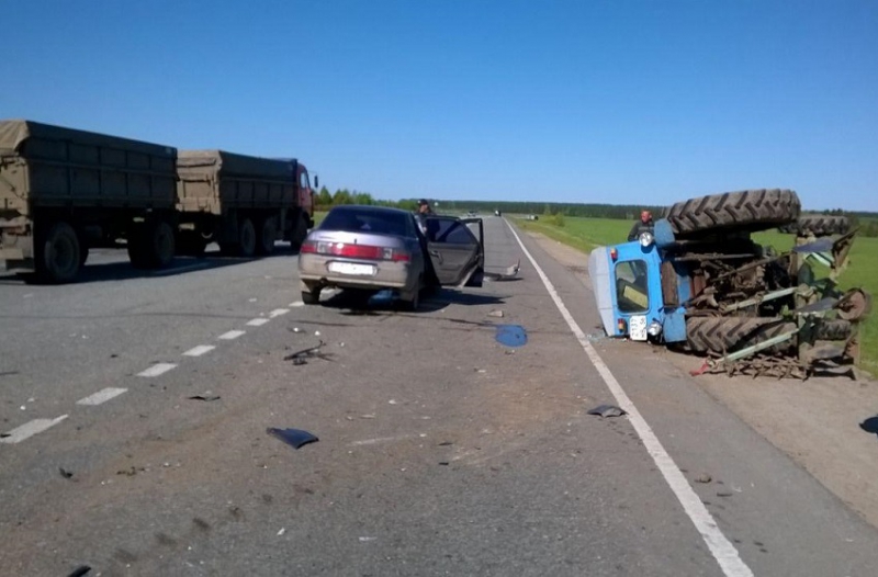 Список дорожно-транспортных происшествий открыл в субботу утром пьяный тракторист. В Куженерском районе на 61 км автодороги Йошкар-Ола — Уржум пьяный местный житель, управляя трактором «Т-40», на перекрестке неравнозначных дорог не убедился в безопасности маневра и столкнулся с «ВАЗ-2110». От удара трактор перевернулся на бок. В ДТП были травмированы оба водителя и три пассажира «десятки». Все они после оказания медицинской помощи были отпущены домой.