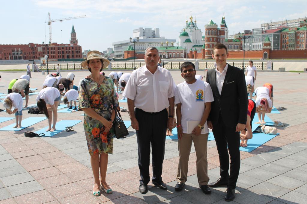 В этом году II Международный День Йоги состоялся 19 июня. Его одновременно отметили более 50 регионов РФ. В Марий Эл он прошел на Патриаршей площади. Участников приветствовали министр спорта Республики Марий Эл Сергей Киверин и представитель Посольства Индии в РФ Ранджит Кумар.