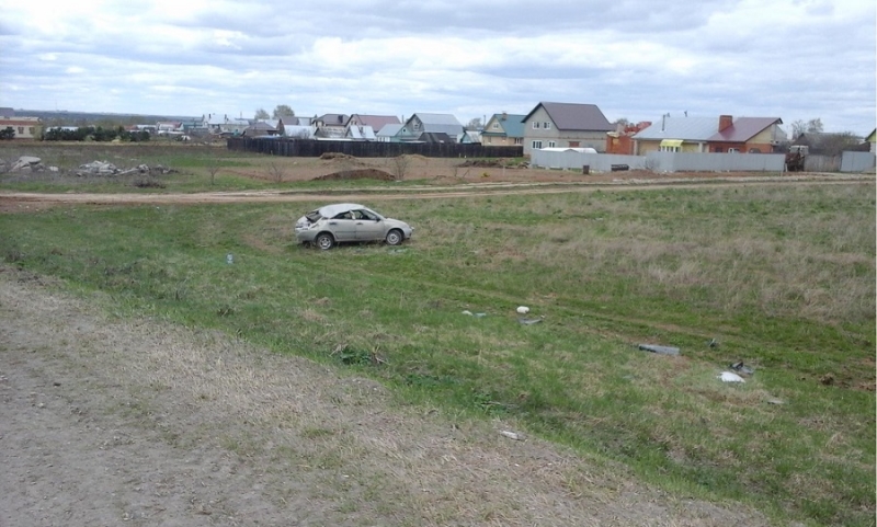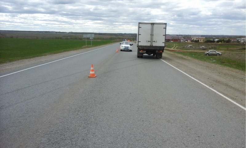 Пьяный водитель, обгоняя грузовик, вылетел в кювет