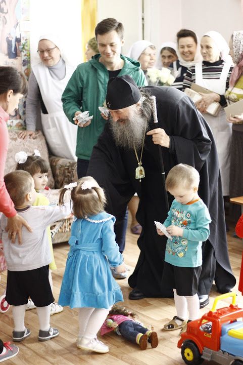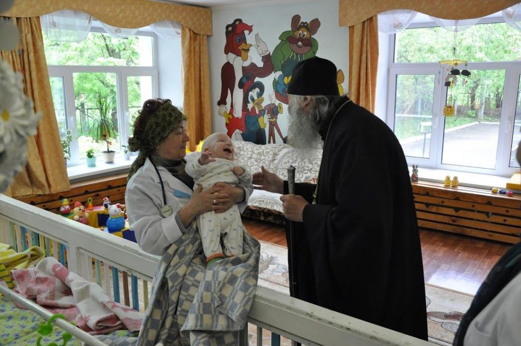 Владыка Иоанн в очередной раз посетил ГУ «Специализированный дом ребенка для детей с поражением центральной нервной системы и нарушением психики». Архиепископ посетил все группы и подарил детям и воспитателям сладкие подарки. Каждому ребенку он уделил внимание и пообщался с теми, кто уже умеет разговаривать.