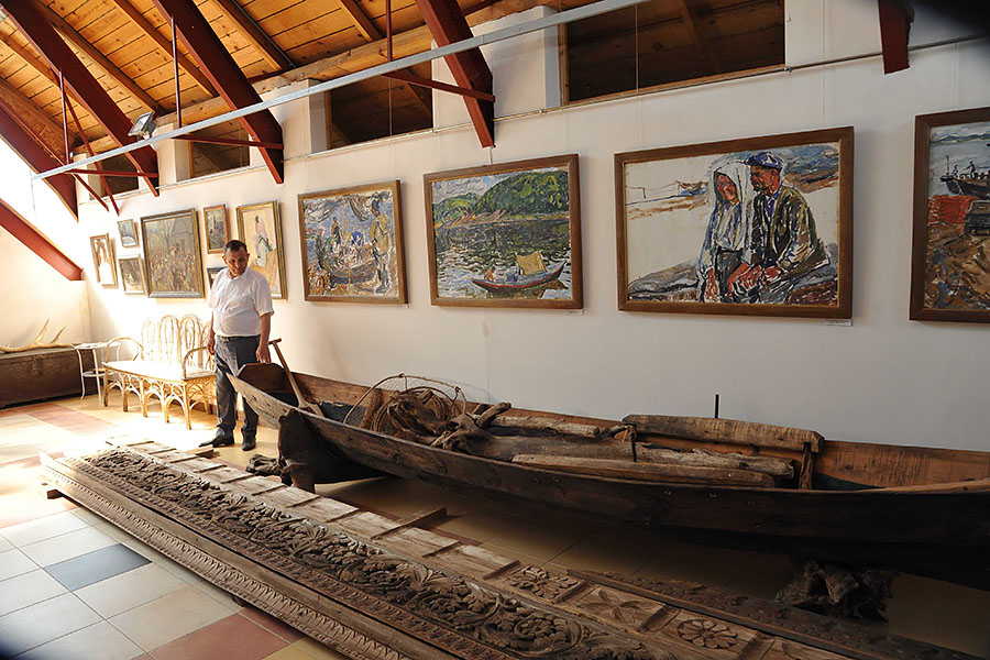 Знакомство с творчеством Сергея Алдушкина началось с музея акварелиста. В небольшом родовом доме собраны уникальные старинные вещи: картины отца, крестьянина-рыбака. По словам Сергея Алдушкина, его отец нигде не учился мастерству, но в 22 года написал работу, которая теперь является для самого художника самой ценной картиной в коллекции.