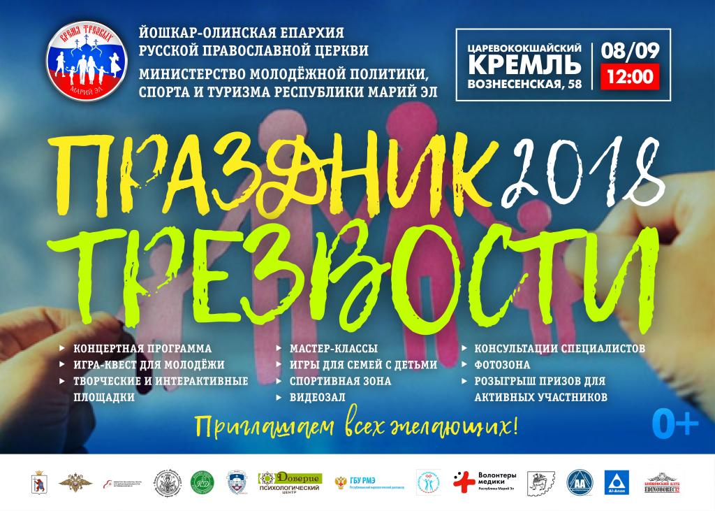 Сегодня на территории Царевококшайского Кремля состоится мероприятие, посвященное Всероссийскому дню трезвости, — «Праздник трезвости». Организаторами выступили Йошкар-Олинская епархия и Министерство молодежной политики, спорта и туризма.