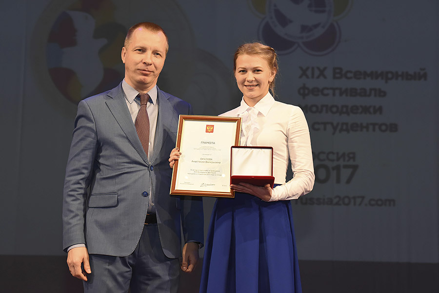 В завершение выступления лучшие добровольцы из Марий Эл были отмечены грамотами и памятными медалями за подготовку и проведение 19 Всемирного фестиваля молодежи и студентов.