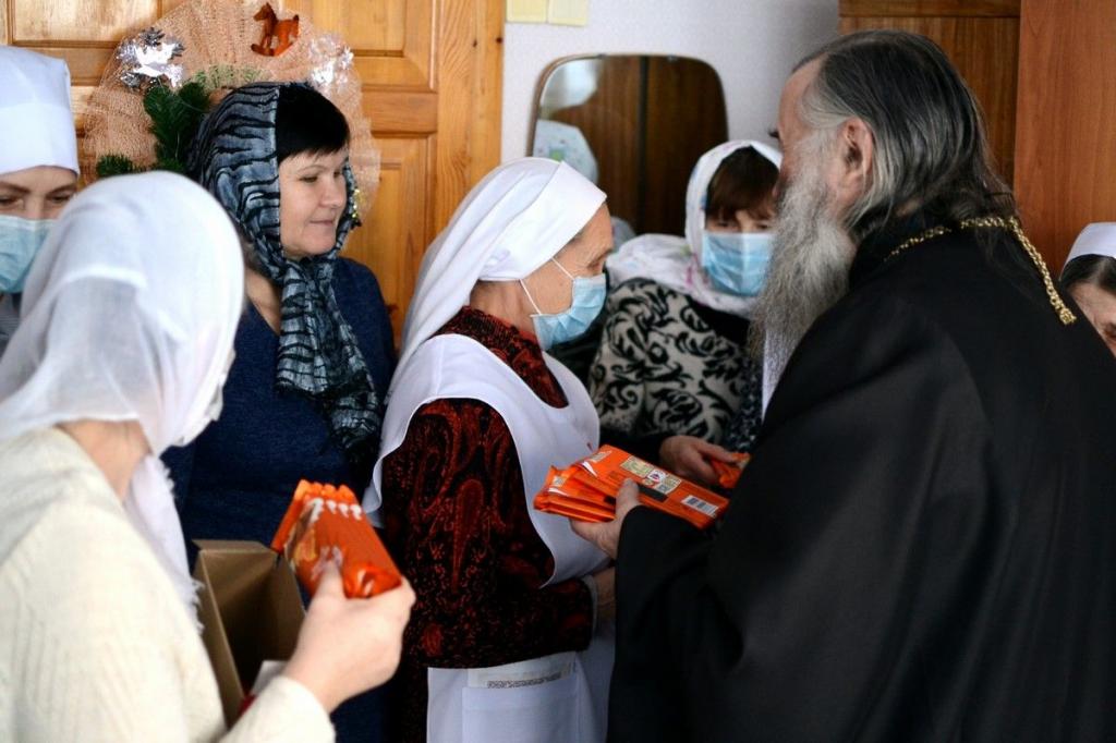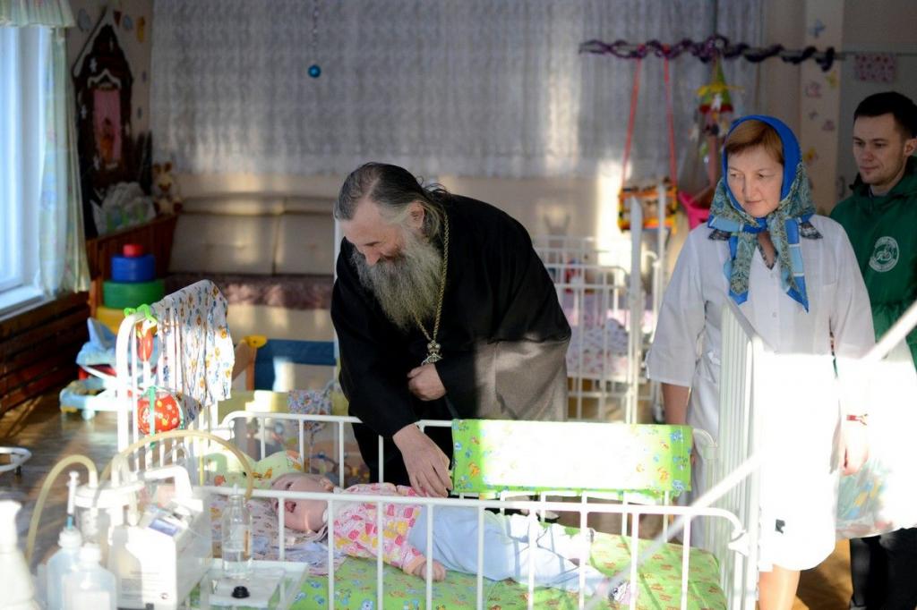 Владыка поприветствовал каждого ребёнка, вручив сладкие подарки, каждого отечески погладил по голове, благословил. И лишь у кроваток лежачих детей улыбку ненадолго сменяло сосредоточенное выражение лица.