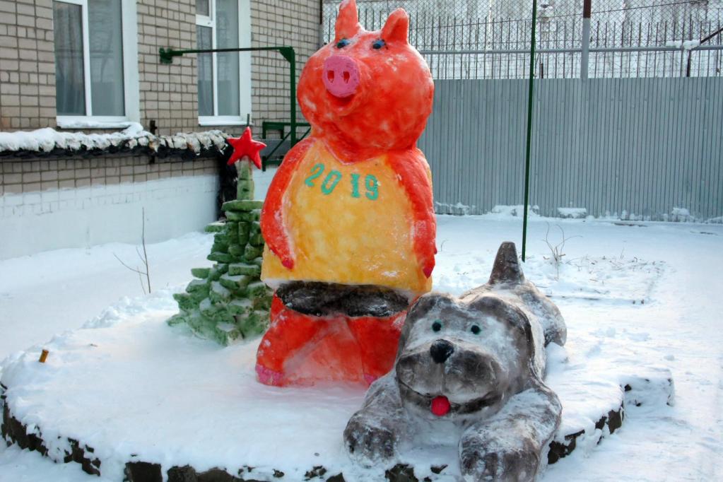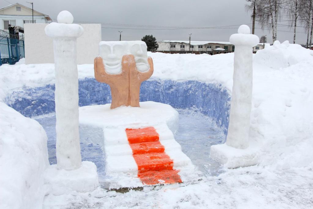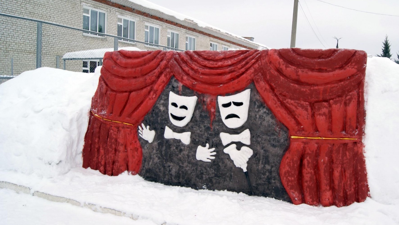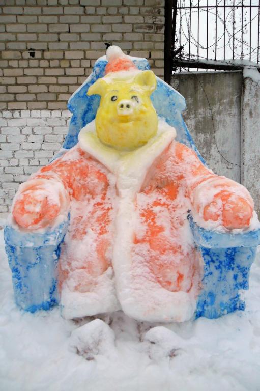 Большая часть представленных на конкурс работ была посвящена двум темам, связанным с календарем: Году театра в России и наступившему Году Свиньи. Итоги подводились на основе фотографий, поскольку мероприятие проводилось в течение всей зимы. Так что и времени, и возможности творчески поработать с самым доступным материалом у всех желающих скульпторов было предостаточно.