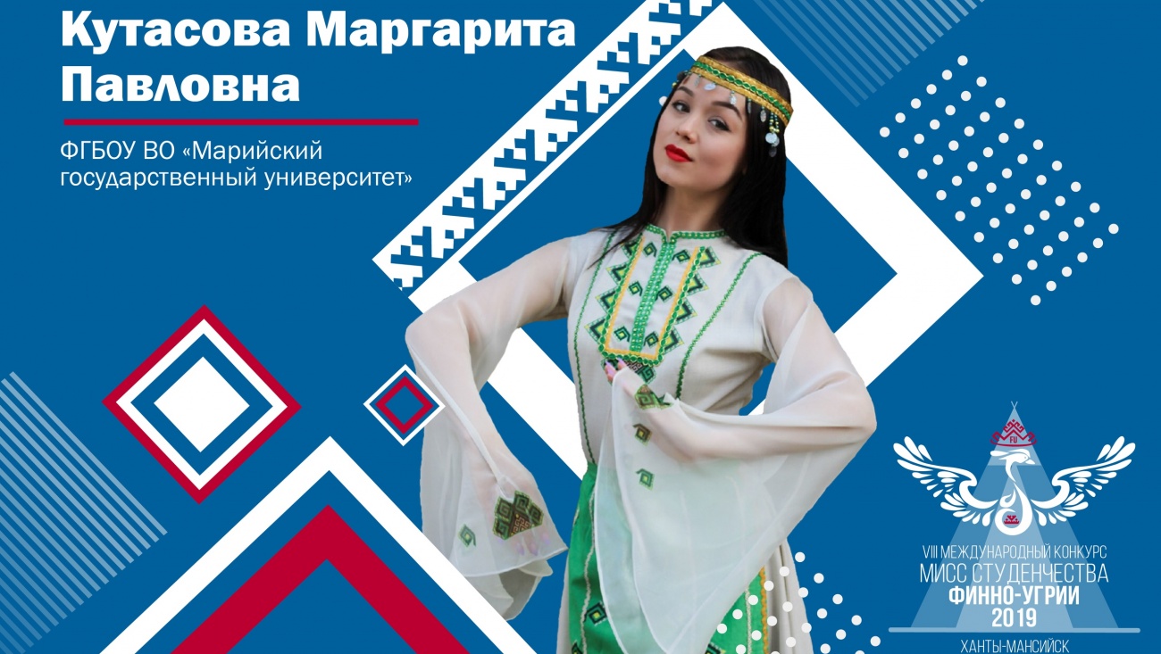 Студентка 2 курсе магистратуры Института национальной культуры и межкультурной коммуникации МарГУ Маргарита Кутасова будет представлять Марий Эл на Международном конкурсе «Мисс студенчества Финно-Угрии-2019».