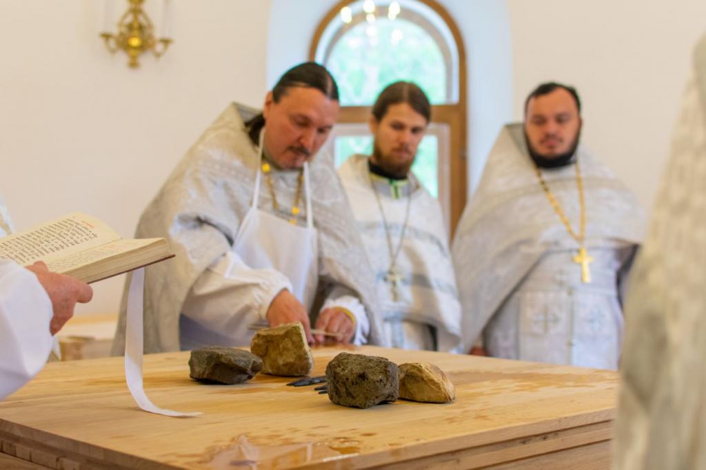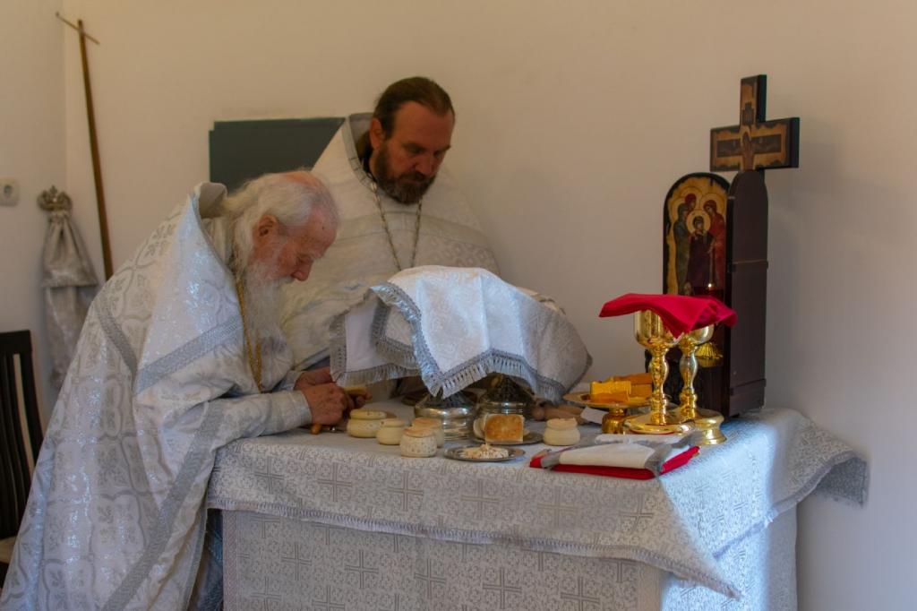После чина освящения Владыка возглавил Литургию святителя Иоанна Златоустого на новоосвященном престоле.