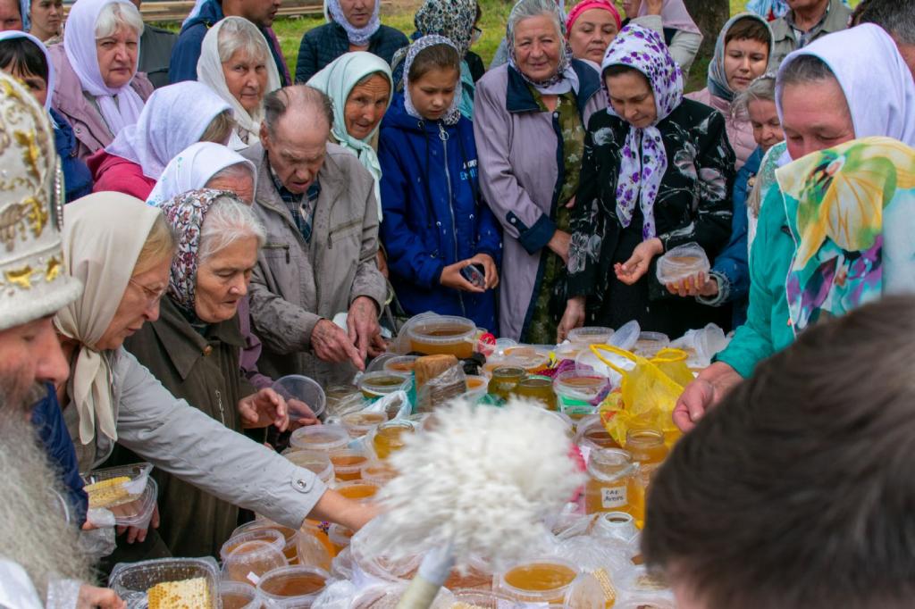 По традиции праздника после Литургии был освящён мёд. Затем Владыка обратился к собравшимся с проповедью.