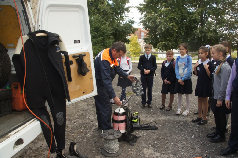 Представители Йошкар-Олинской аварийно-спасательной службы продемонстрировали ребятам водолазное снаряжение, устройство для самоспасания с высоты и гидравлические инструменты, с помощью которых спасатели оказывают помощь людям, попавшим в дорожно-транспортное происшествие.
