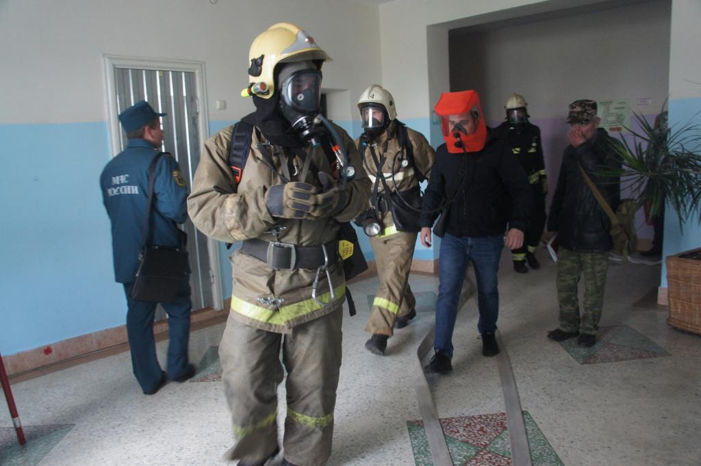 Сотрудникам пожарной охраны, в свою очередь, также предстояло продемонстрировать необходимые профессиональные навыки. Одновременно с тушением «пожара» звенья газодымозащитников искали в задымленных помещениях условных пострадавших, которых нужно было вывести на улицу, используя спасательные устройства типа «капюшон». Огнеборцы успешно провели эвакуацию двух статистов, один из которых, по легенде учений, был неходячим.