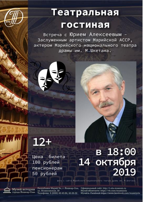 В «Театральной гостиной» пройдёт встреча с Юрием Алексеевым, заслуженным артистом Марийской АССР, актёром Марийского национального театра драмы им. М.Шкетана.