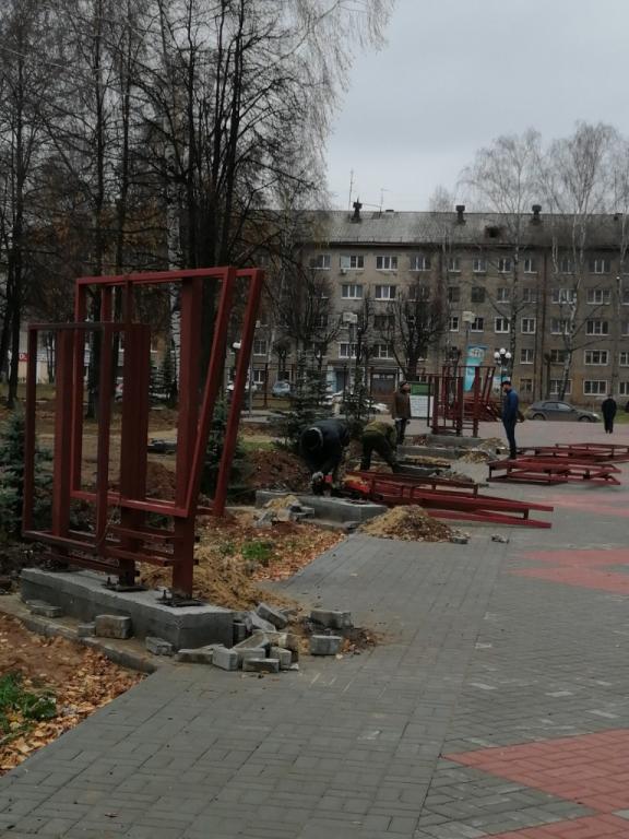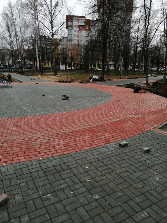 В настоящий момент ведутся работы по замене бордюрного камня и укладке брусчатки на тротуарах.
