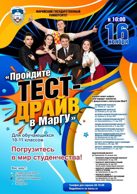 В субботу, 16 ноября, в 10:00 в МарГУ пройдёт акция «Пройдите тест-драйв в МарГУ!».