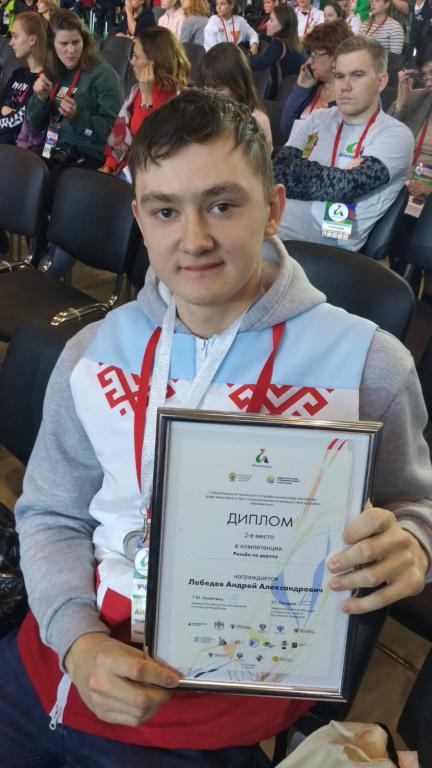 • Андрей Лебедев, студент Марийского политехнического техникума — 2 место в компетенции «Резьба по дереву».