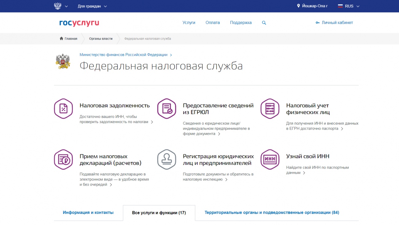 Налоговая служба Йошкар-Олы напоминает, что государственные услуги Федеральной налоговой службы в электронном виде можно получать не только на официальном сайте службы, но и с помощью Единого портала государственных и муниципальных услуг.