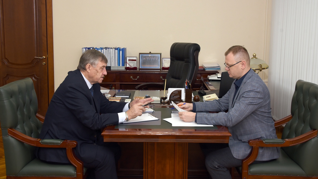 Председатель Госсобрания Анатолий Смирнов сегодня встретился с главным врачом Республиканского клинического госпиталя ветеранов войн Алексеем Красильниковым.