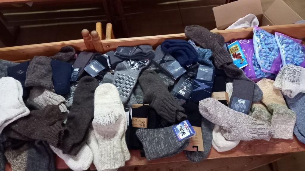Прихожанки своими руками связали шерстяные носки, закупили тёплые стельки, сладости, принесли сушёные яблоки со своих огородов. А воспитанники воскресной школы написали солдатам письма, где поблагодарили их за доблесть и любовь к Родине, пожелали вернуться домой живыми и невредимыми.