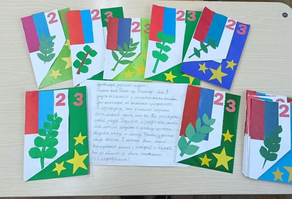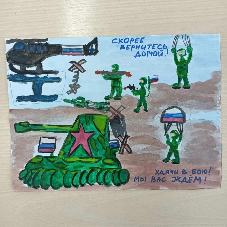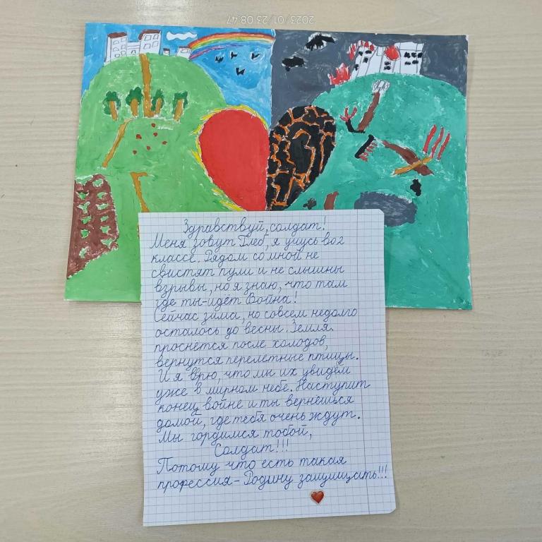 Они написали им трогательные слова поддержки и нарисовали красочные рисунки с пожеланиями скорейшего возвращения домой с победой.