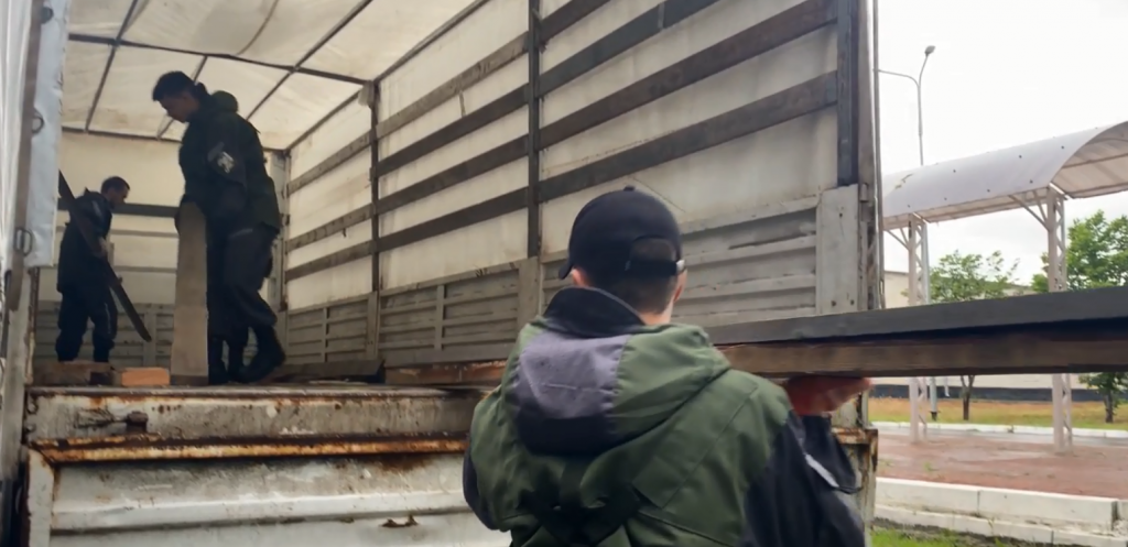 Кроме того, три дня команда трудилась в Мариуполе. Ребята помогли перенести 240 новых кроватей по этажам и комнатам социального общежития. Также они работали на стадионе «Азовец», в который со всей России привозят гуманитарную помощь. Здесь они фасовали продукты, одежду, детские игрушки и прочее.