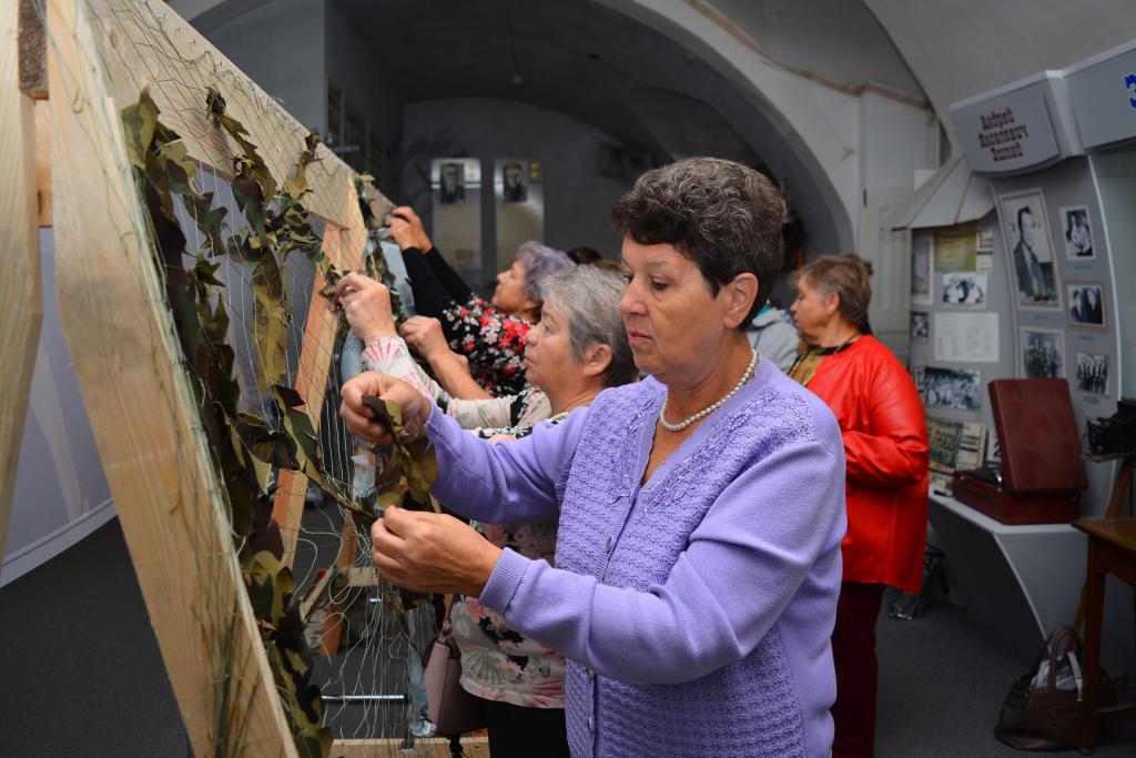 Кроме экспозиции на первом этаже музея разместили также маскировочную сеть и коробку с лентами. Каждый посетитель может внести свою лепту в помощь бойцам, вплетая в сеть ленты. Готовые сети будут отправлены впоследствии в зону СВО.