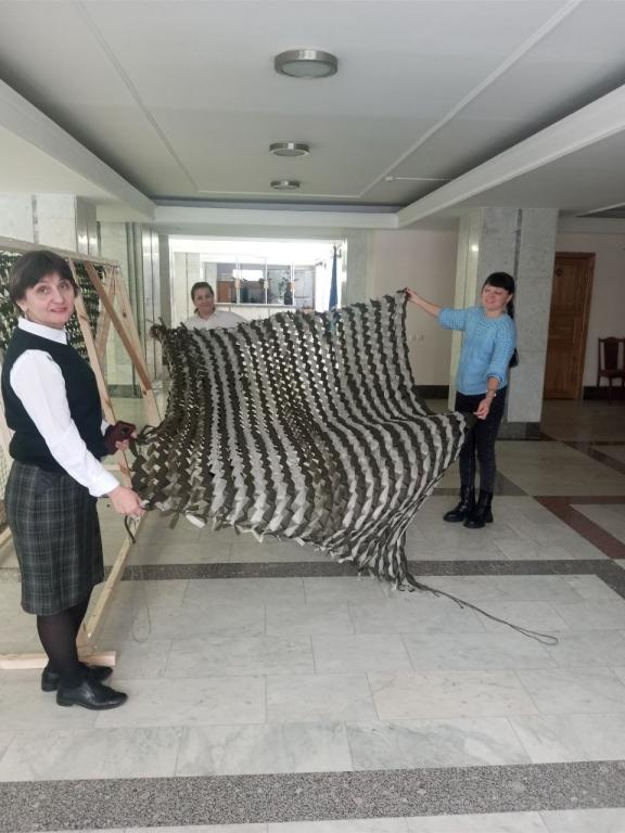 Напомним, в холле администрации стоят рамки, и все желающие могут прийти и внести свою лепту в подготовку маскировочных приспособлений для бойцов СВО.