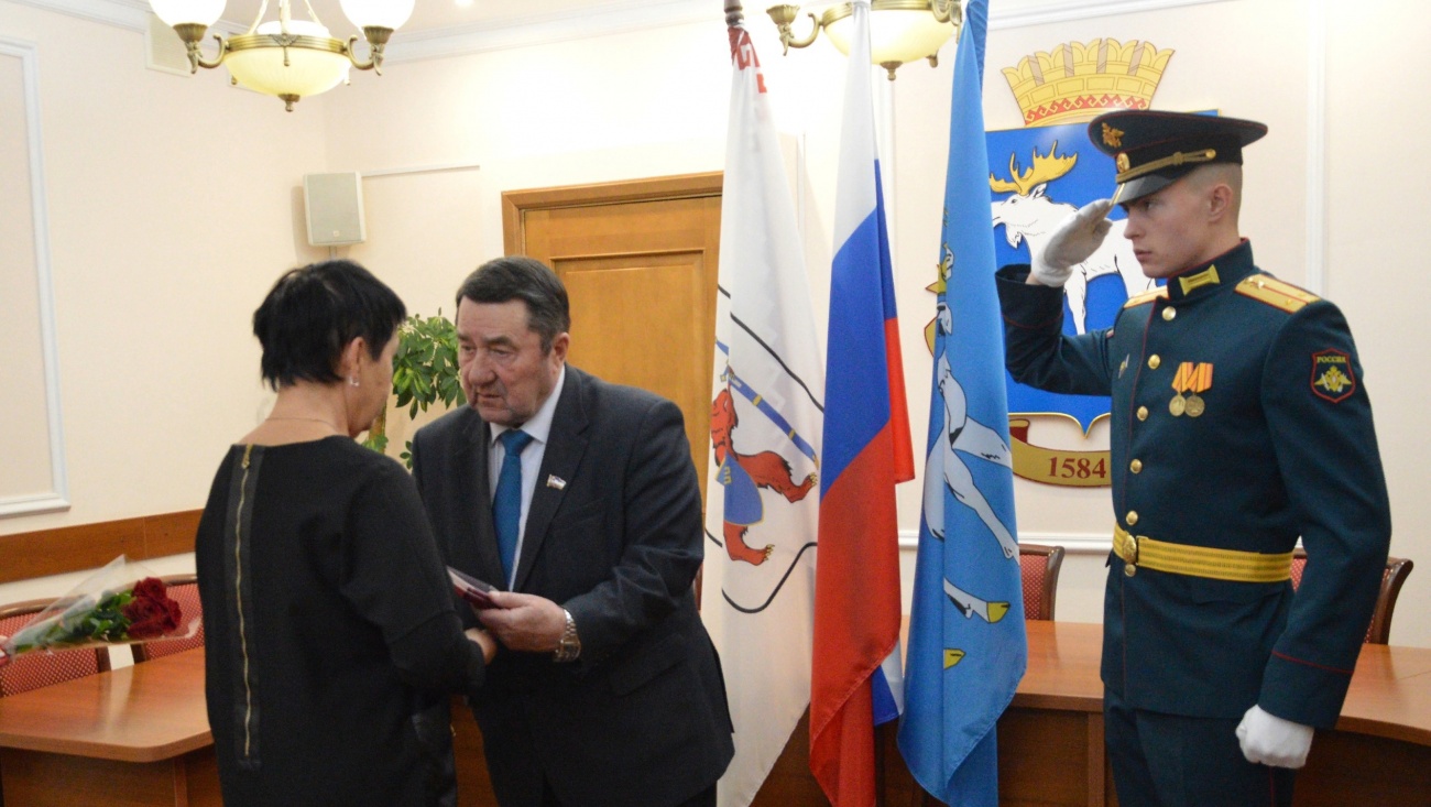 В мэрии Йошкар-Олы родителям бойца, погибшего в ходе СВО, вручили орден Мужества.