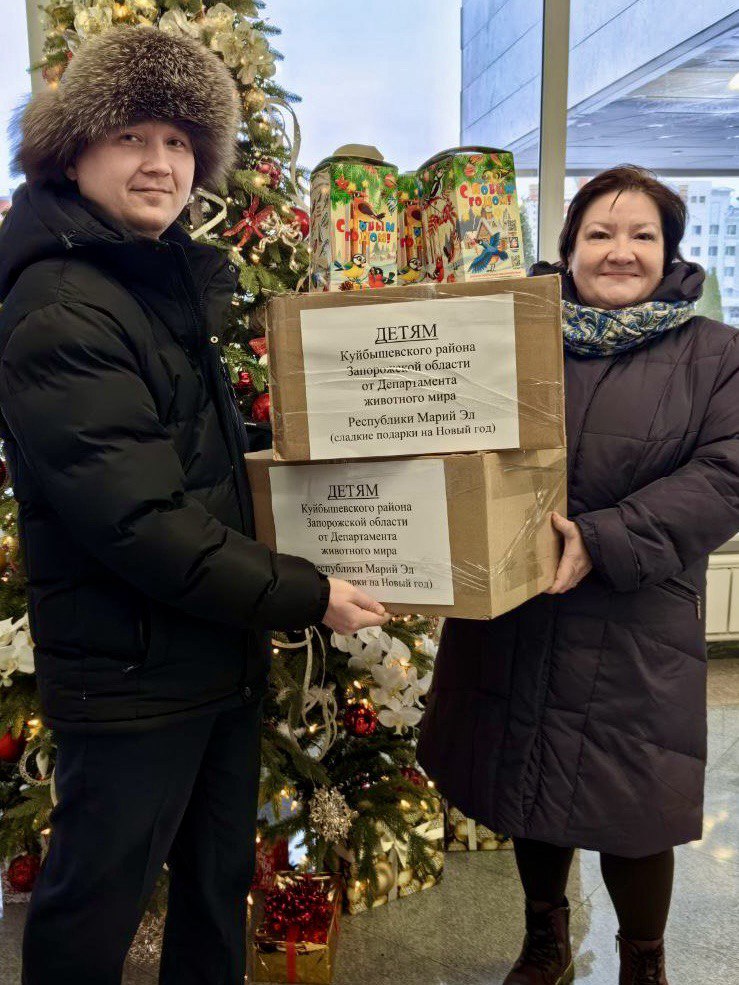 Очередную партию новогодних подарков для детей Куйбышевского района Запорожской области собрали сотрудники Департамента животного мира РМЭ.