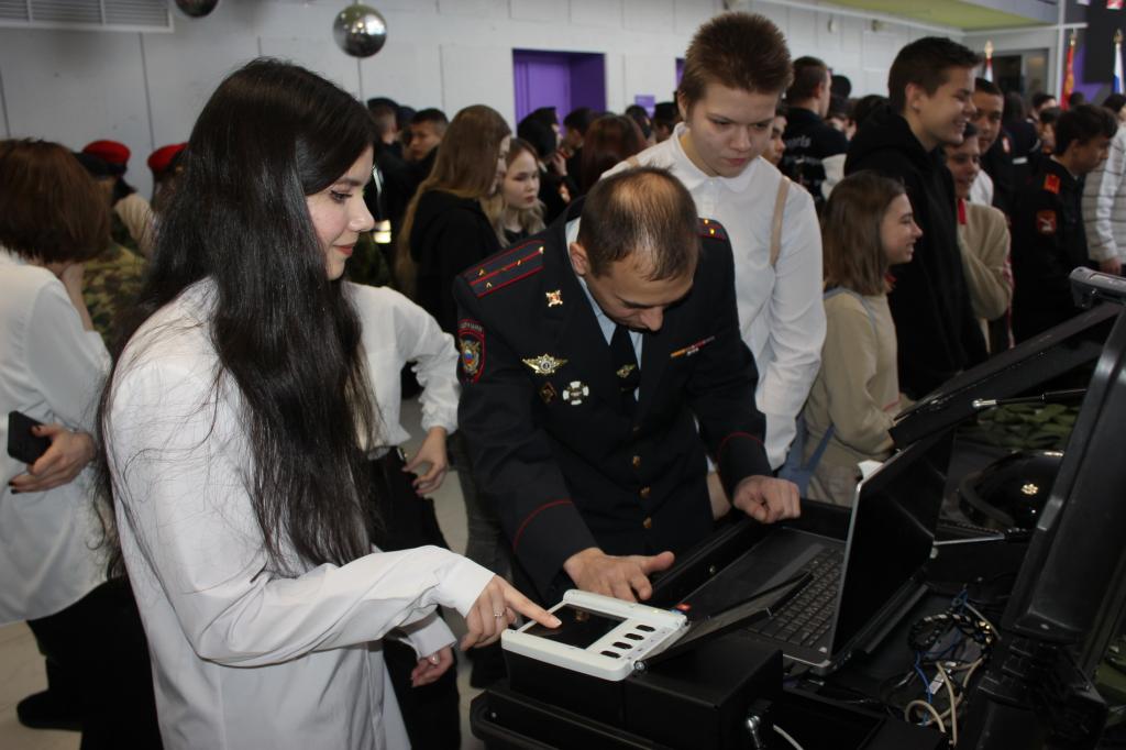 Сотрудники экспертно-криминалистического центра МВД рассказали об особенностях работы эксперта-криминалиста по обнаружению и изъятию различных следов на месте преступления, наглядно продемонстрировав способ изъятия следов пальцев рук. Учащиеся также увидели настоящий криминалистический чемодан и его содержимое.