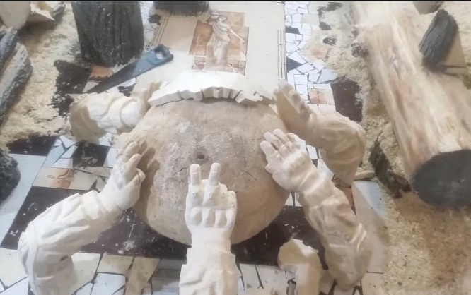 По задумке автора он будет в виде необычного древа, на верхушке которого расположится земной шар, удерживаемый в руках наших военнослужащих. Над композиций будут парить семь голубей, символизирующих жизнь и благую весть.