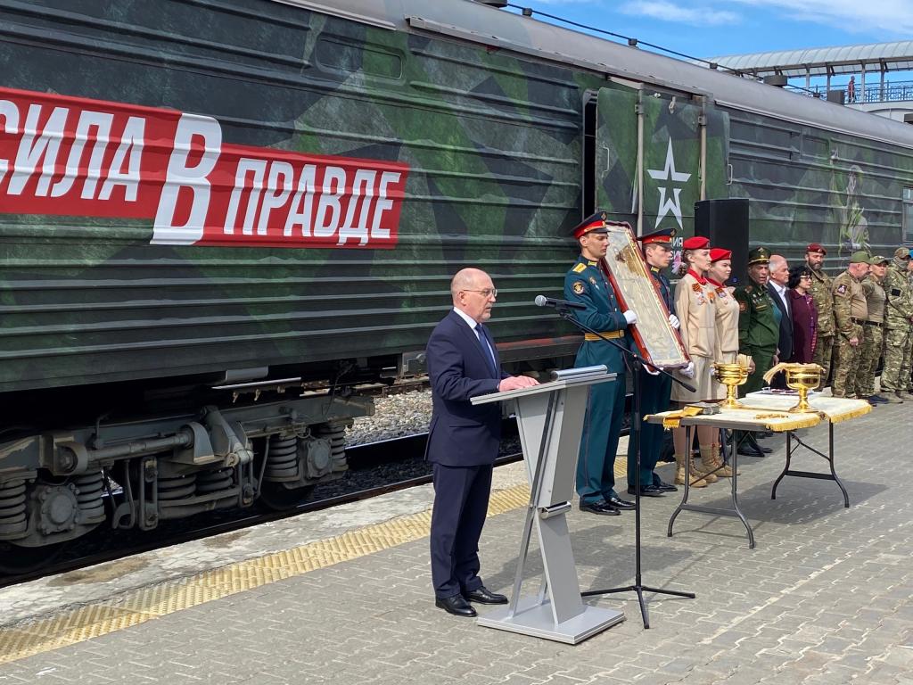 В Йошкар-Олу прибыл агитационный поезд Министерства обороны России «Сила в правде». В марийской столице он сегодня пробудет до 14:30.