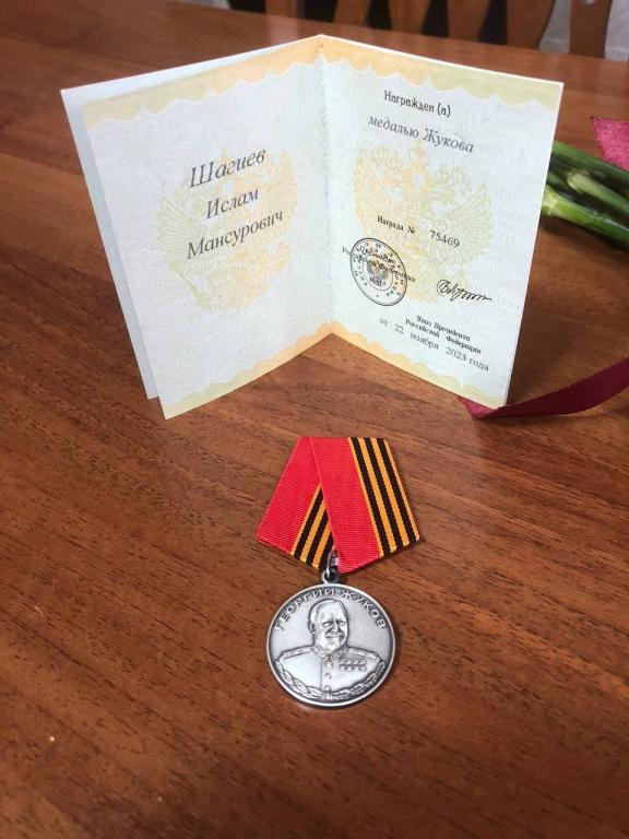 Накануне Дня Победы ветерану специальной военной операции из Параньгинского района Исламу Шагиеву вручили медаль Жукова.