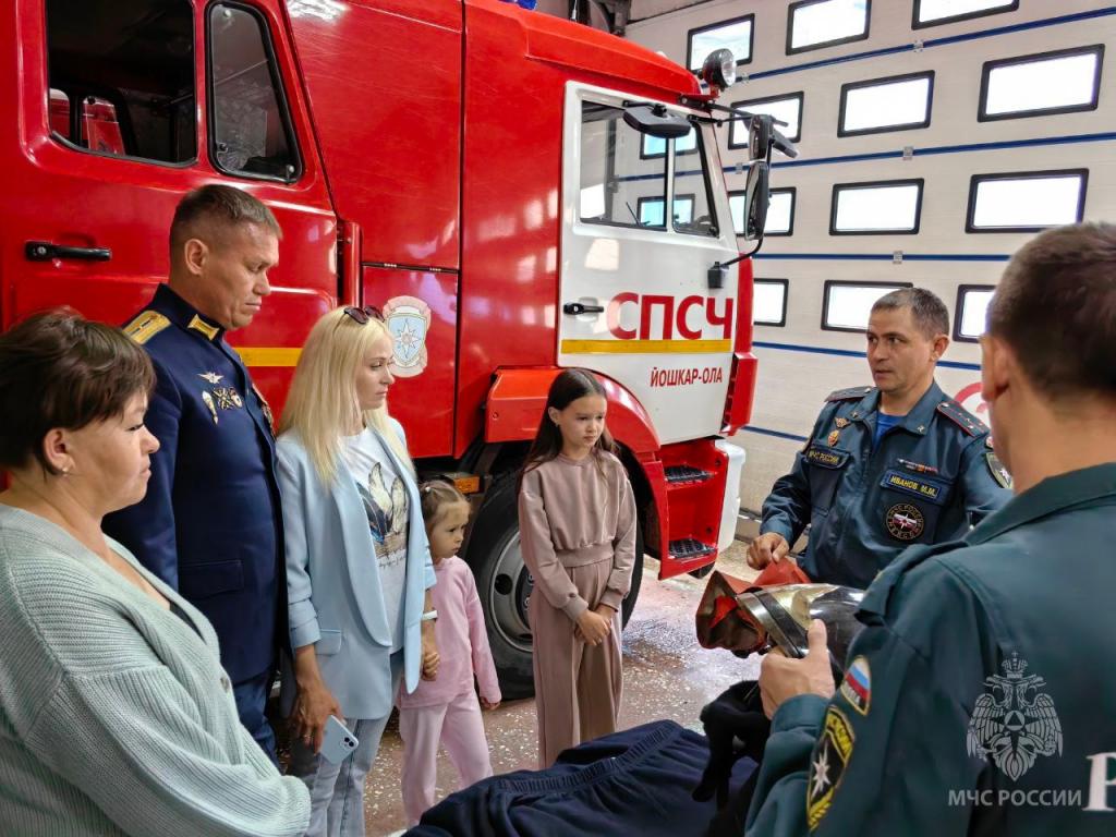 Герой России — младший лейтенант Анатолий Иванов вместе со своей семьёй посетил специализированную пожарно-спасательную часть ГУ МЧС Марий Эл.