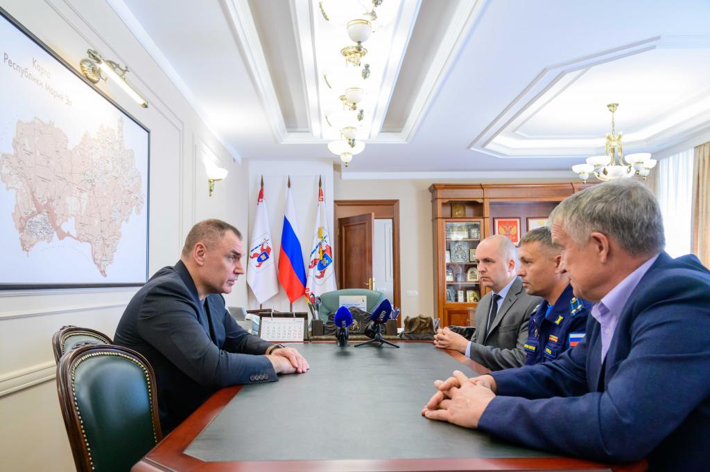 Сегодня глава Марий Эл встретился с командиром войсковой части Йошкар-Олинского гарнизона подполковником Антоном Котеневым. Глава передал ему оборудование, необходимое для прикрытия критически важных объектов в районе аэродрома от атак беспилотных воздушных судов и диверсионно-разведывательных групп: тепловизоры, радиостанции и лазерный дальномер.