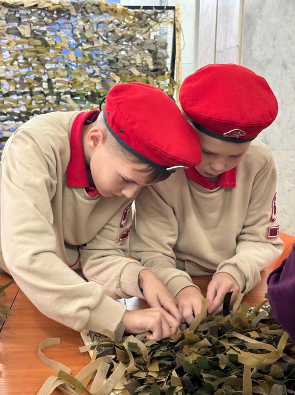В здании мэрии ребят учили плести маскировочные сети и нашлемники для бойцов СВО. Школьники с большим желанием включились в работу и потрудились на славу.