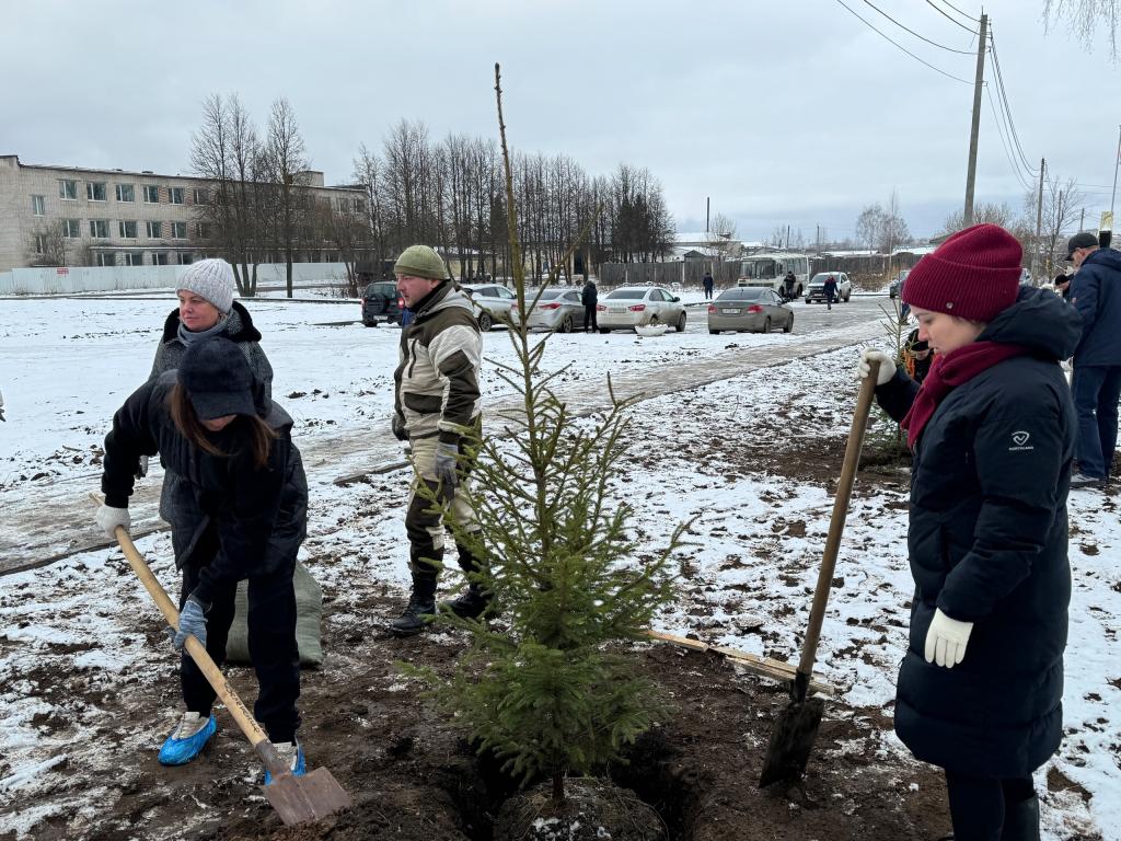 Возле Аллеи героев в Йошкар-Оле высадили молодые ели