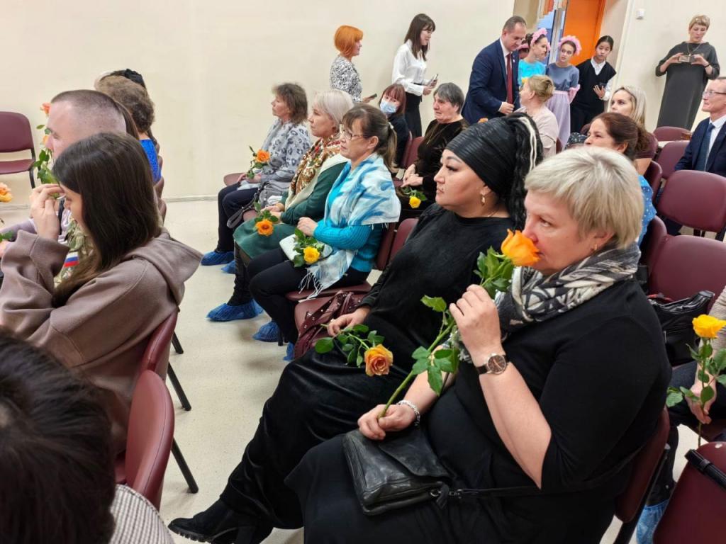 Для присутствующих сестра погибшего участника СВО Татьяна Галкина исполнила трогательные песни, а в завершение мамы получили в подарок цветы.