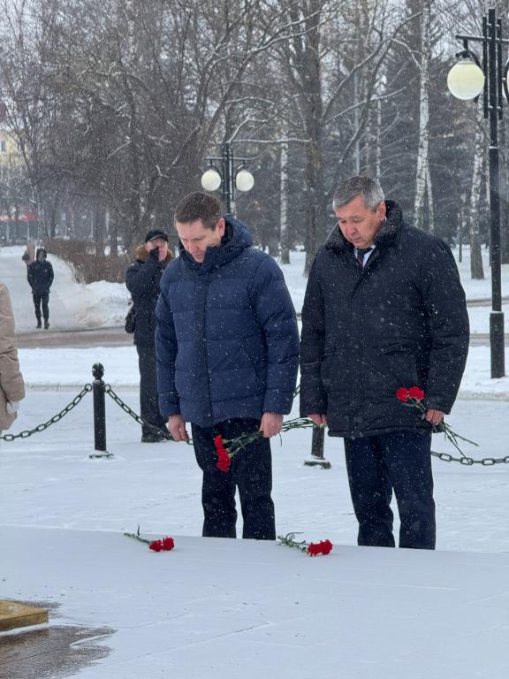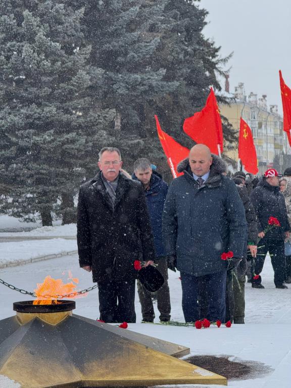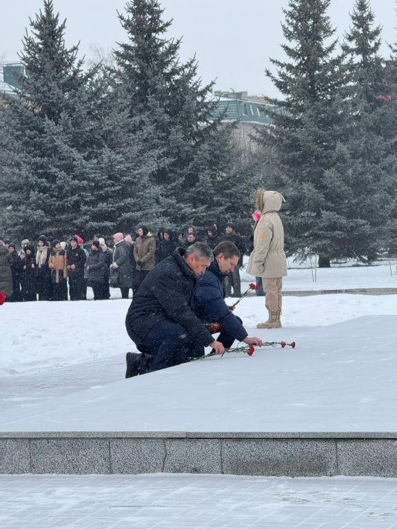 К Вечному огню сегодня возложили цветы и почтили память военнослужащих. В мероприятии приняли участие представители администрации, профсоюзов, патриотических объединений и общественности, а также жители города.