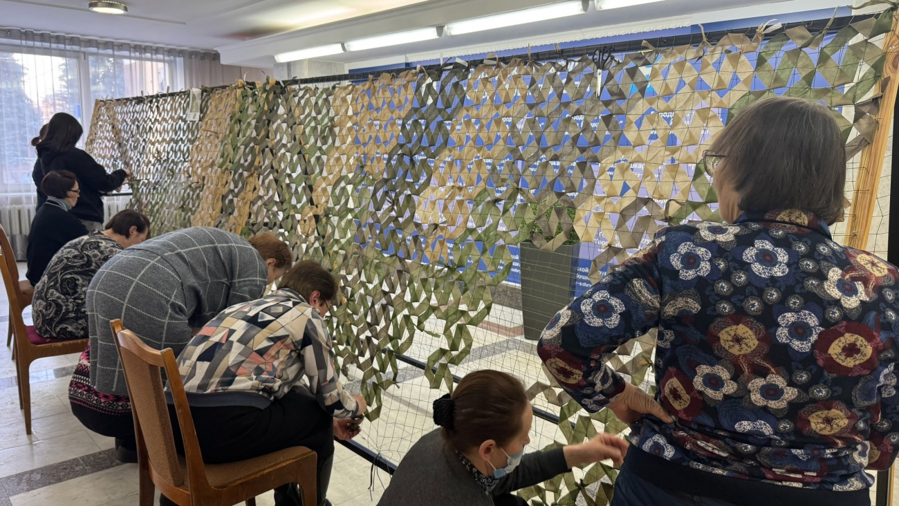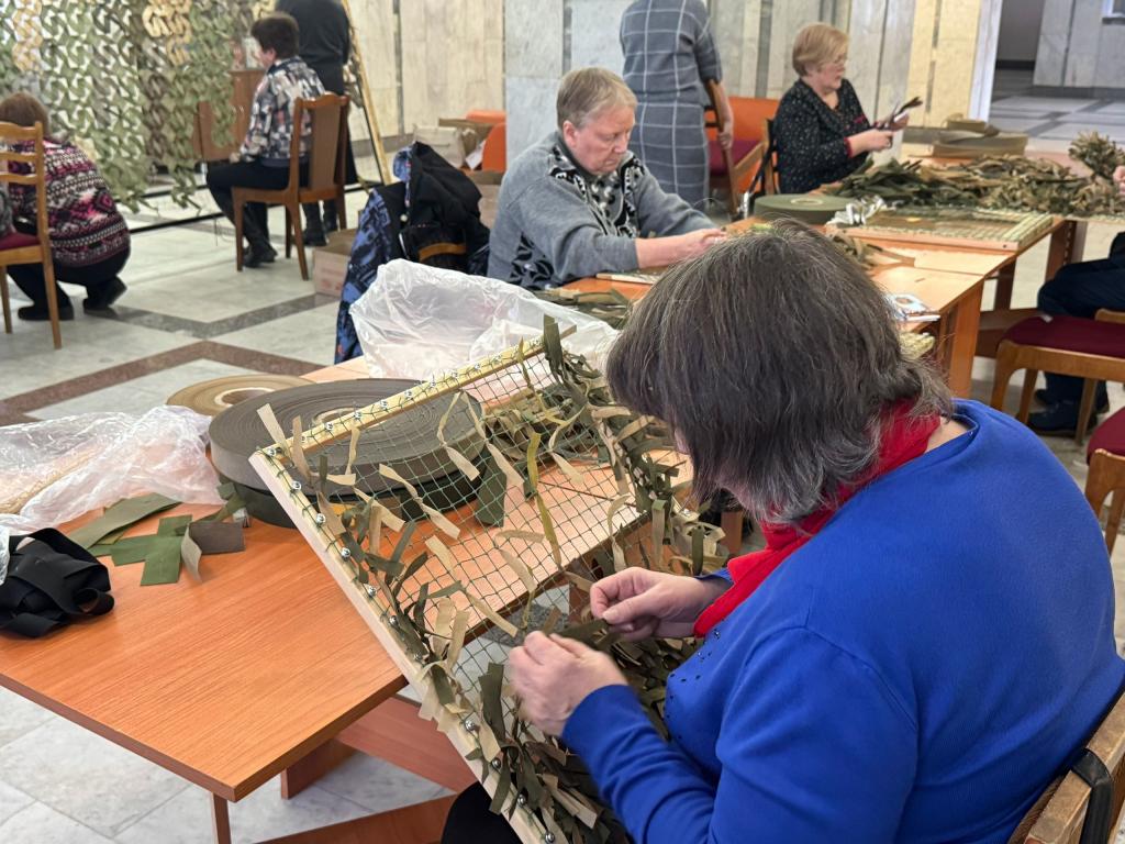 Волонтёры Йошкар-Олы осваивают плетение нового камуфляжного изделия — накидки для снайперов.