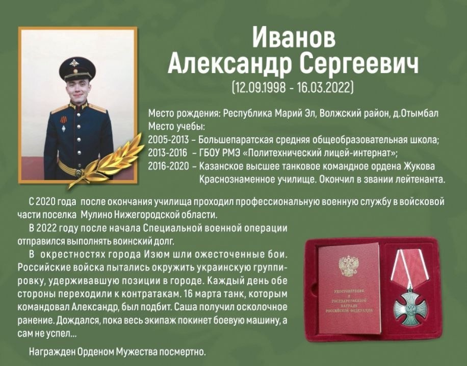 Кроме того, в лицее открыли «Парту героя» в честь выпускника Александра Иванова, погибшего при исполнении воинского долга в зоне специальной военной операции, сообщили в Минобрнауки Марий Эл.