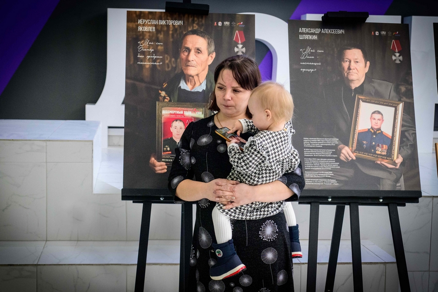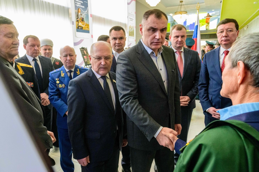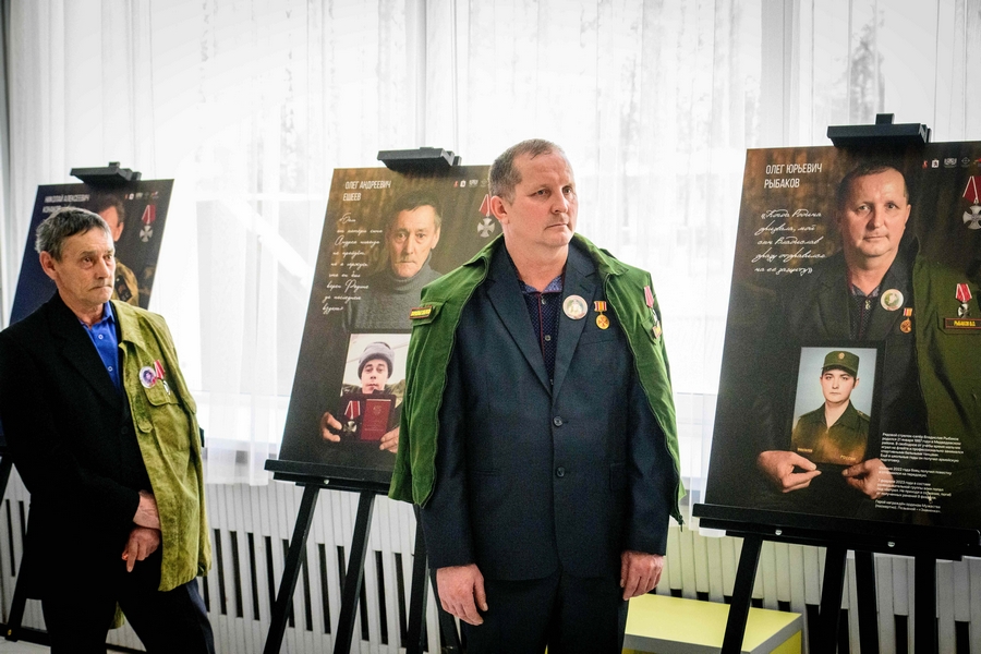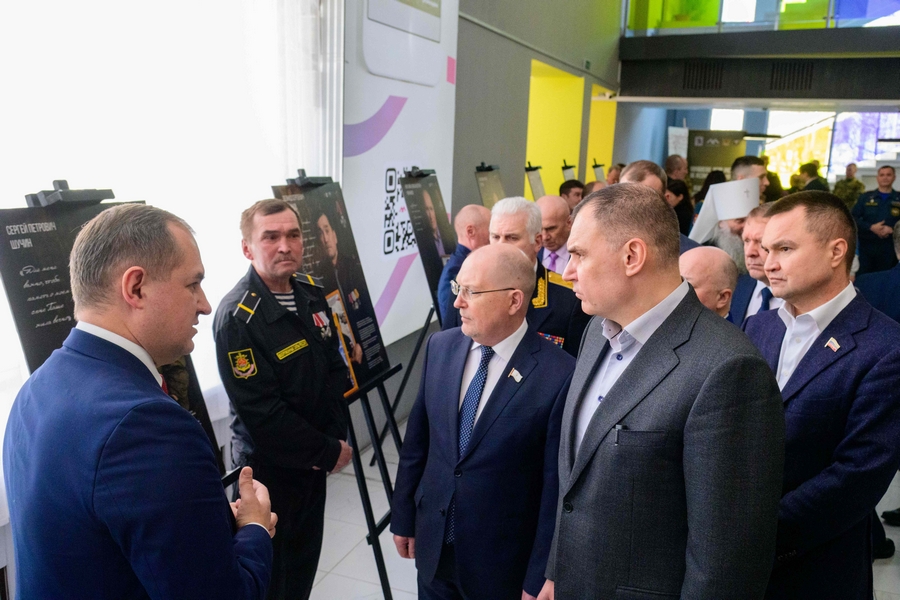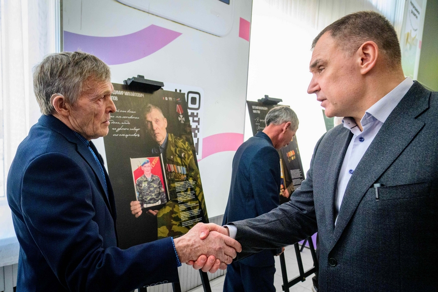 К Дню защитника Отечества в фойе дворца открылась фотовыставка «Отец Героя». Фотопроект посвящён отцам и их сыновьям-военнослужащим, погибшим на СВО. Экспозицию осмотрел глава региона.