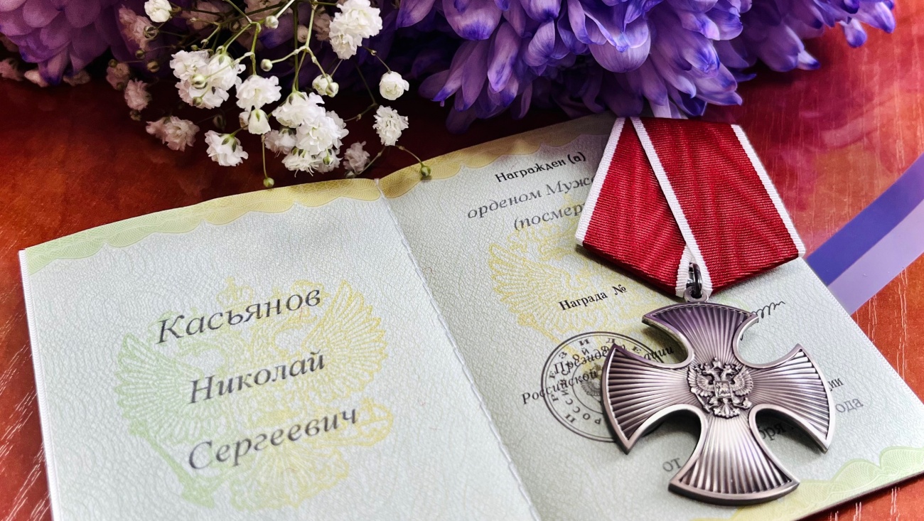 Представители власти вручили матери рядового Касьянова Николая Сергеевича орден Мужества. Эту награду Николай получил посмертно.