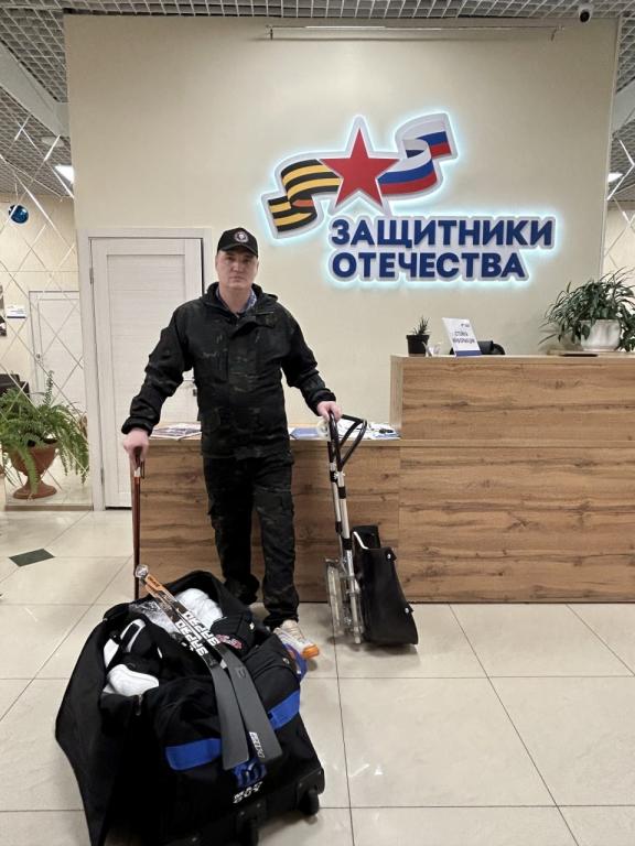 Первым бойцом, которому вручили инвентарь, стал Сергей Малинин. После серьёзного ранения на передовой ему ампутировали ноги. Сейчас Сергей активно занимается спортом.